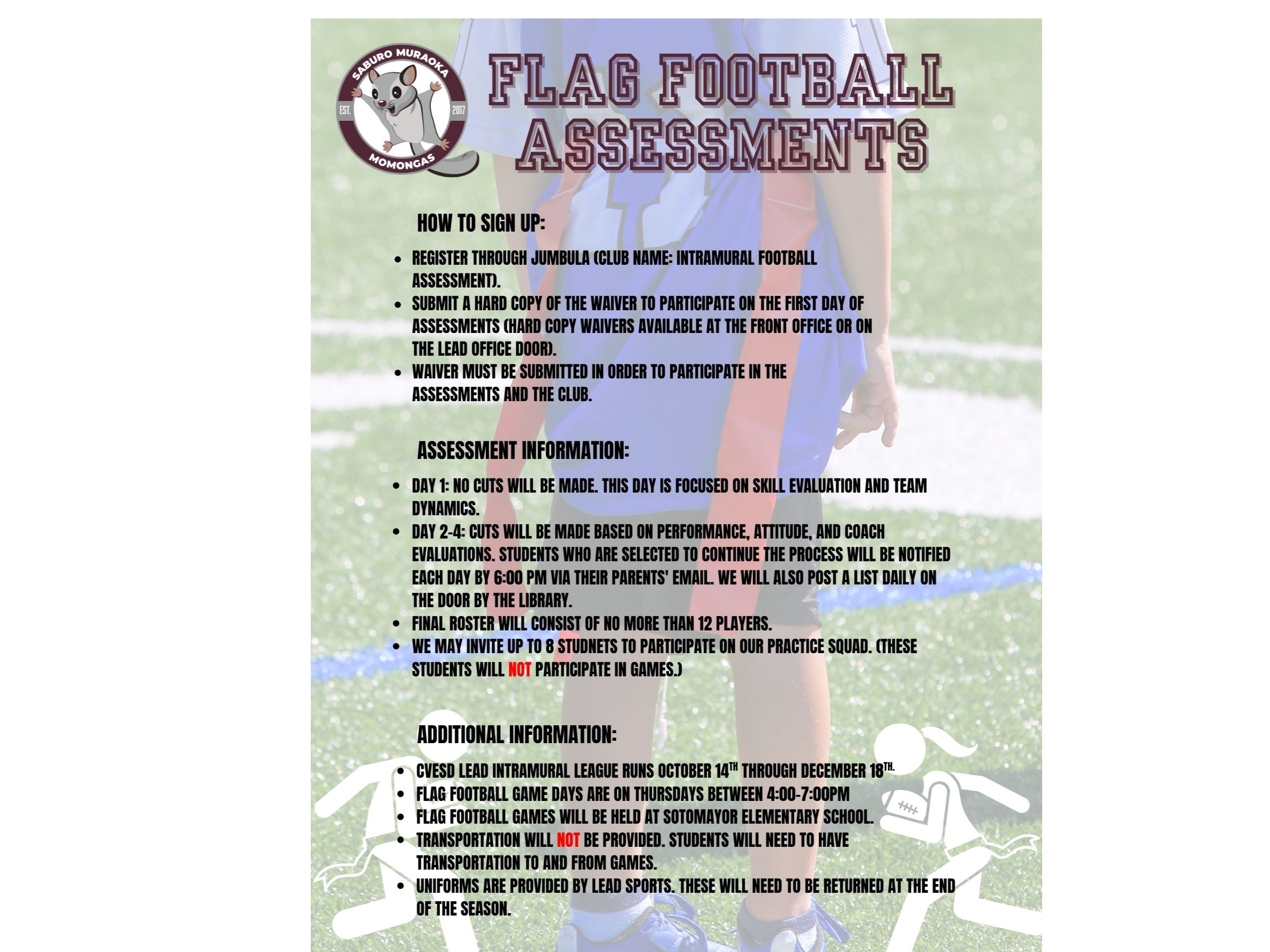 Think you’ve got what it takes to hit the field? We’re selecting 12 students to join our official intramural flag football team this season. In addition, we’ll welcome up to 8 students to our practice squad—a great opportunity to train, develop skills, and be part of the team environment. Please note, practice squad members will not be eligible to participate in games. Bring your energy, hustle, and team spirit—we’re looking for dedicated players ready to compete and grow!