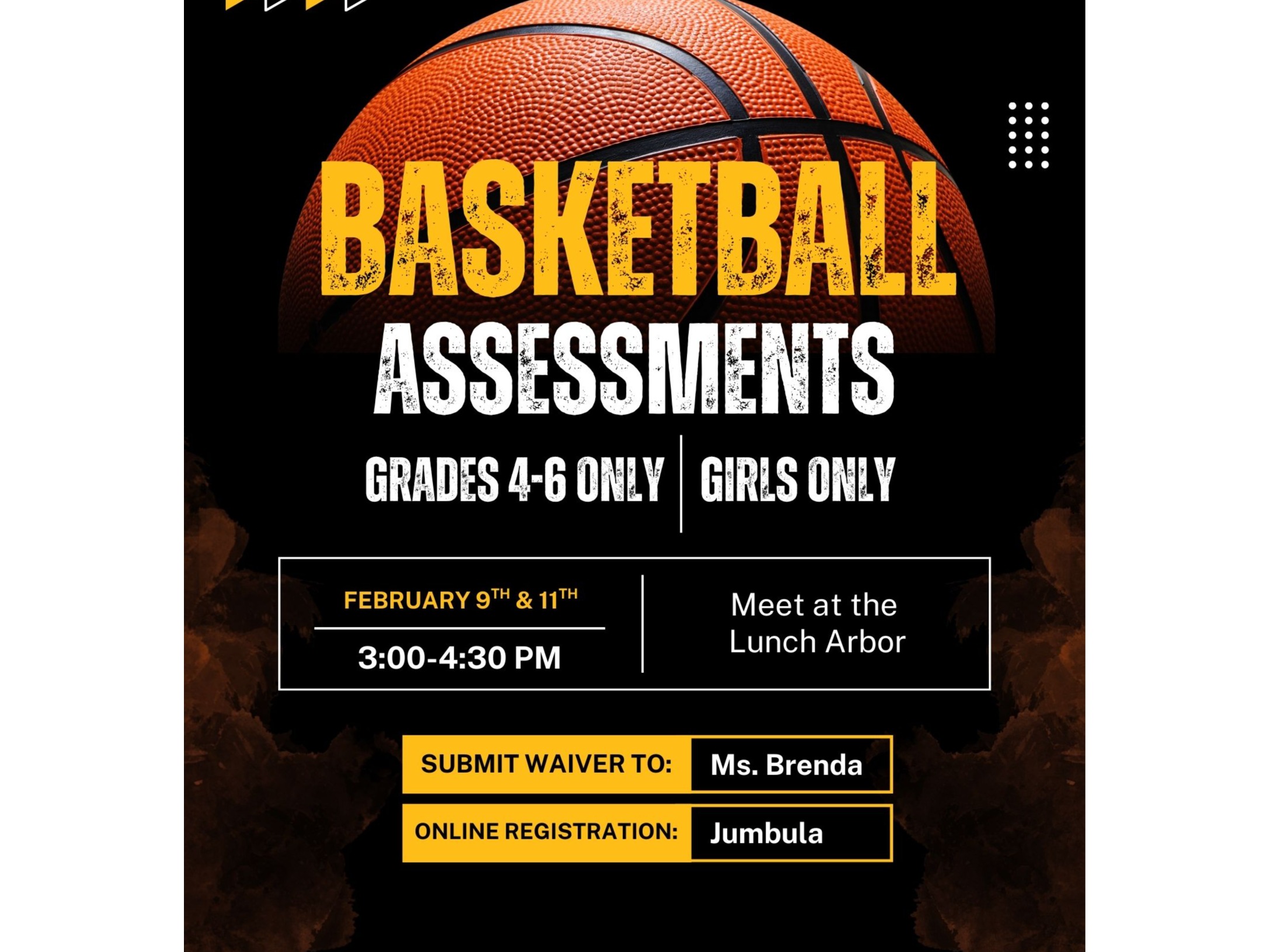 To create a balanced and competitive Co‑Ed team, we will be holding basketball assessments.